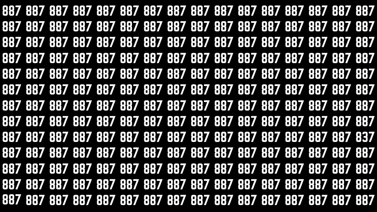 Optical illusion puzzles have taken over social media because they push your visual focus to its limit. Today’s challenge is a fun but tricky one. You are given a grid filled with repeating 887s, but somewhere inside, a single 837 is hiding. Your task is to detect it as quickly as possible. Many people miss it at first glance, which makes the puzzle even more exciting. If you enjoy fast-paced mental challenges, this one will grab your attention instantly.