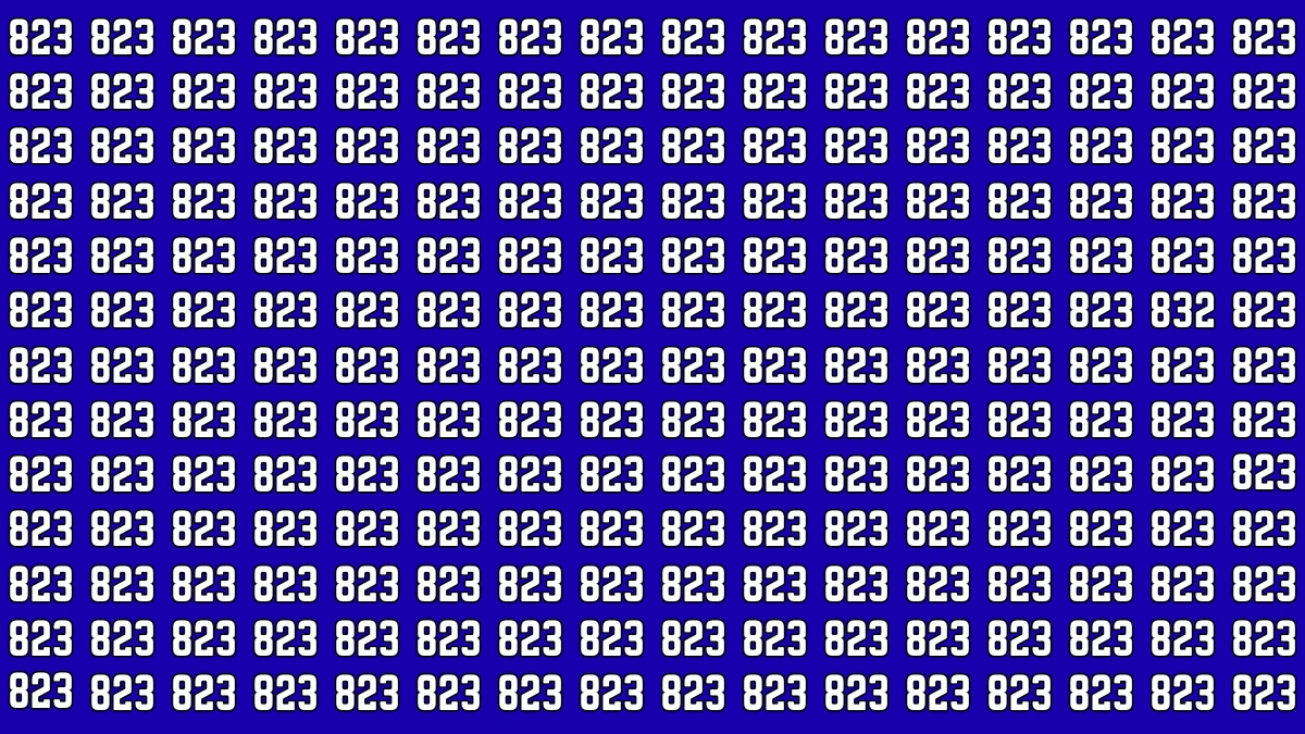 To spot the number 832, scan the grid for differences. The 832 might appear slightly different in terms of alignment, size, or shape compared to the other 823s. Keep your focus sharp, and look closely at each number.