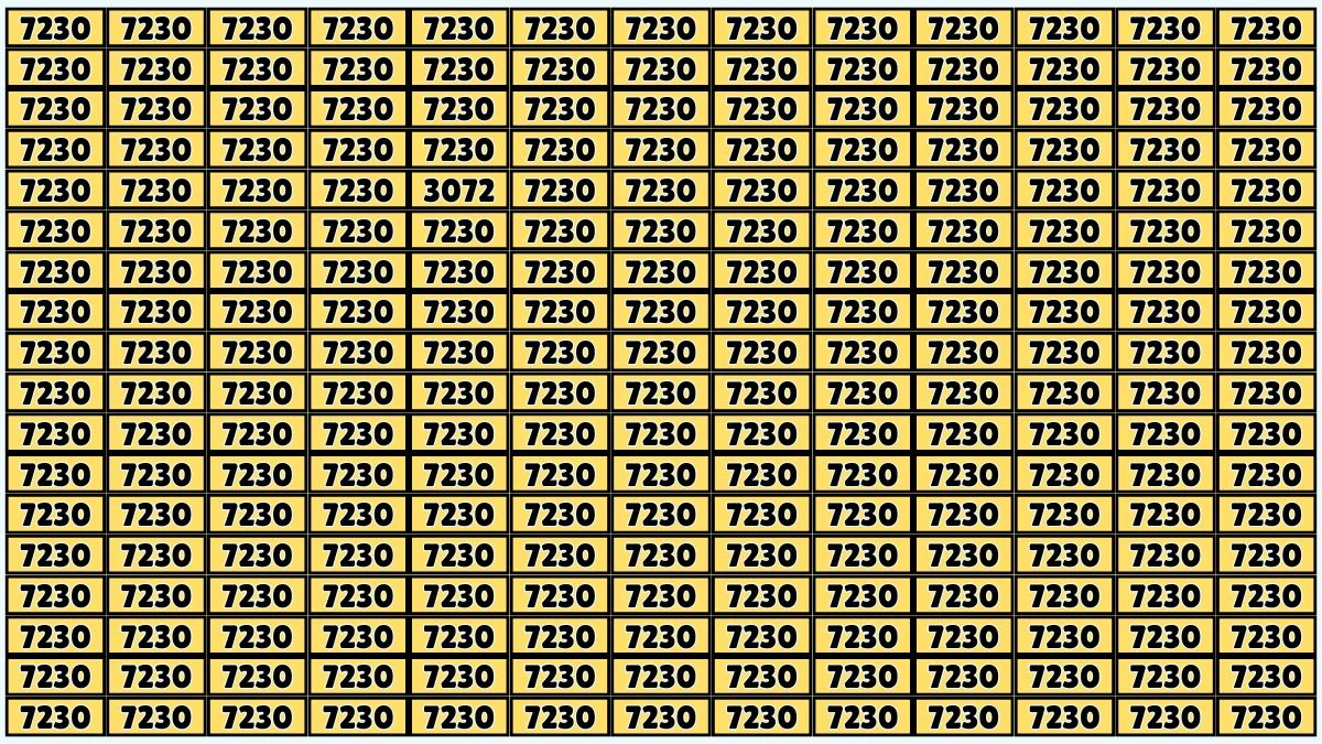 The trick behind this puzzle is in how the numbers are arranged. At first glance, the sequence of 7230s may appear uniform, but within that sequence is a single 3072 that is camouflaged to make it difficult to spot. The challenge lies in the way your brain tries to process similar-looking numbers as identical, so staying focused and keeping your eyes sharp is key.